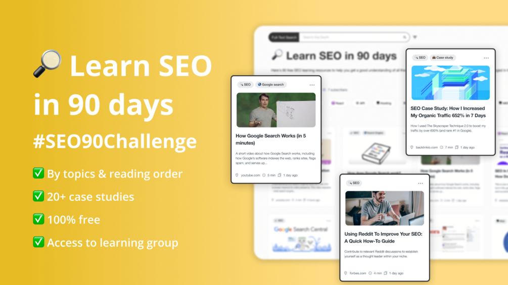 Access to the #SEO90 database and invitation to our learning group to crush the #SEO90 challenge together with others!